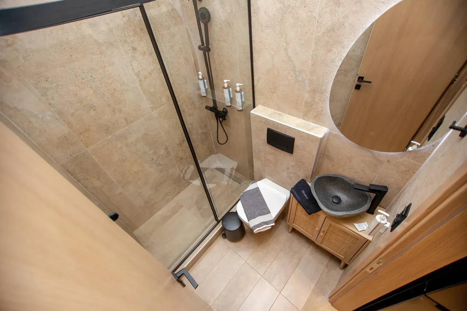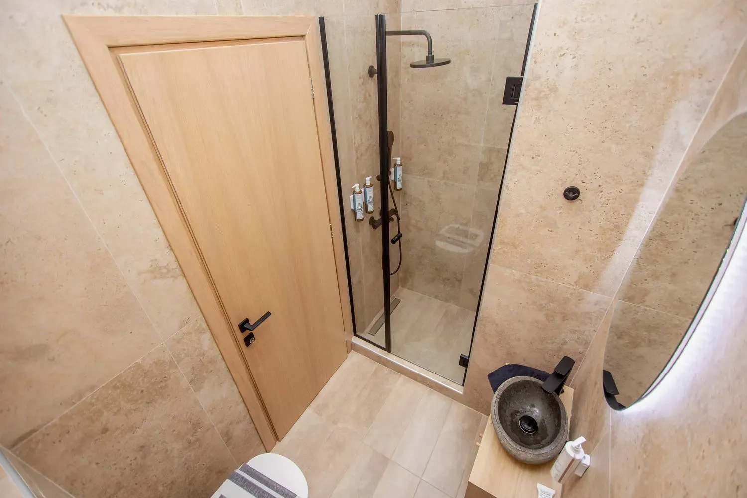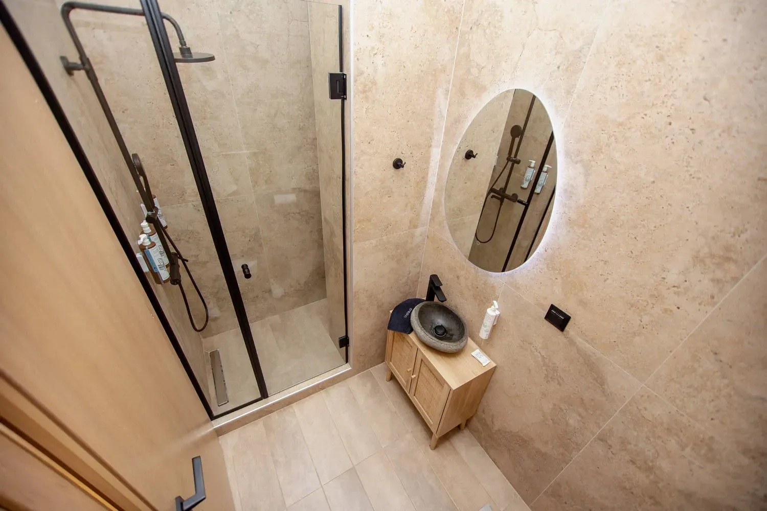 Με μοντέρνα ντουζιέρα για στιγμές χαλάρωσης.